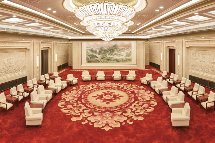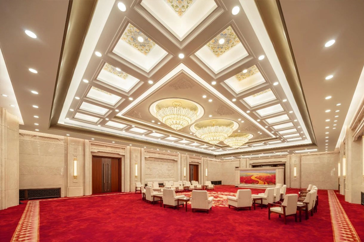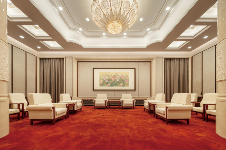 貴賓接待室地毯是接待領導和貴賓的地毯,裝飾一般以新中式和簡歐風格居多,貴賓室格調是大氣、高貴、典雅、嚴肅而不失活躍,具有一定的地域文化品味。